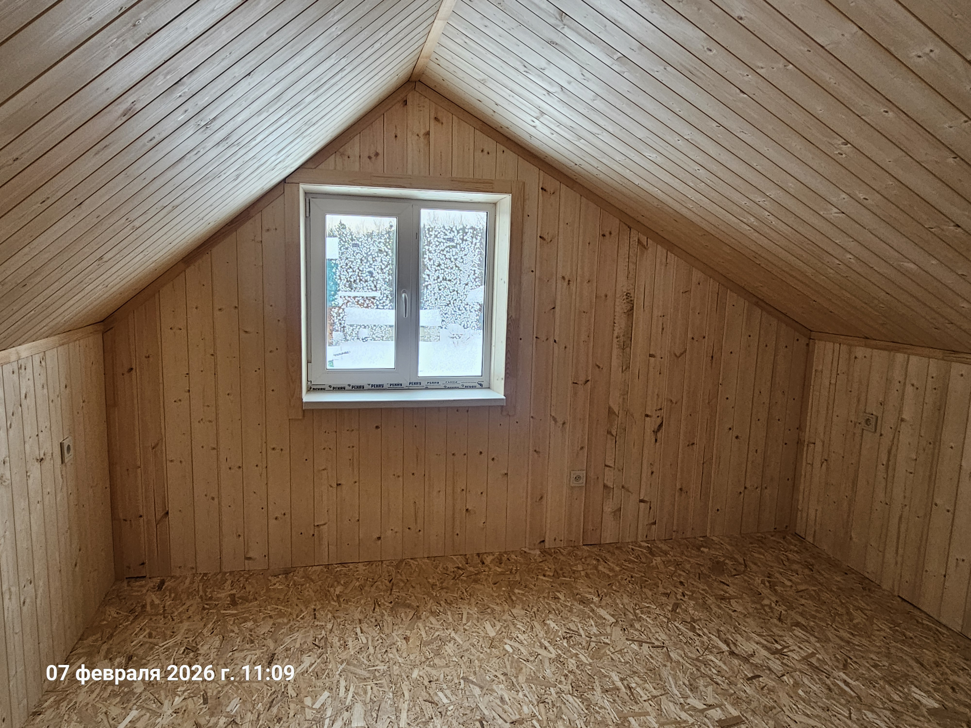 - Каркас межэтажного перекрытия из доски 50х200мм. Шаг 600 мм. Утепление 200 мм. Проем под лестницу.