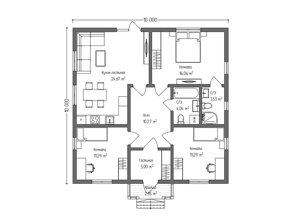 | 11 | внутреняя обшивка гипсокартон 9мм. 1слой. | |||