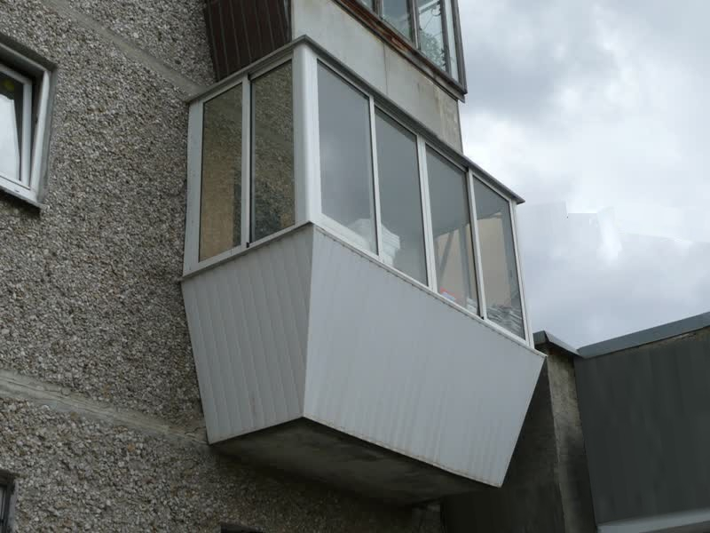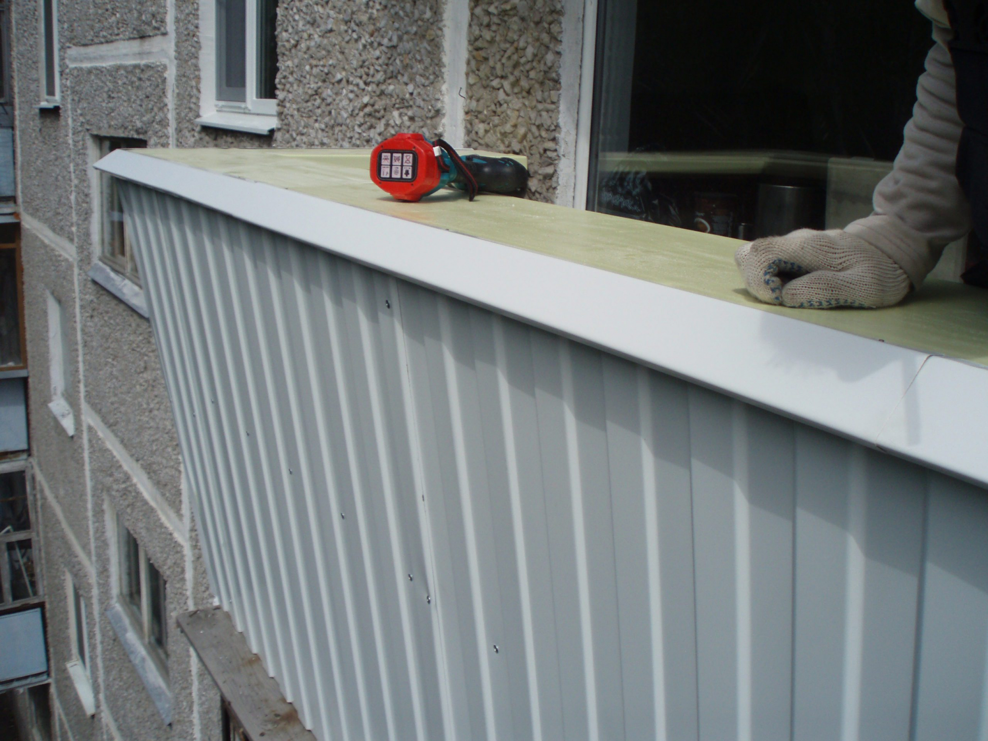 Снаружи балкон обшивается белым профилированным стальным листом.