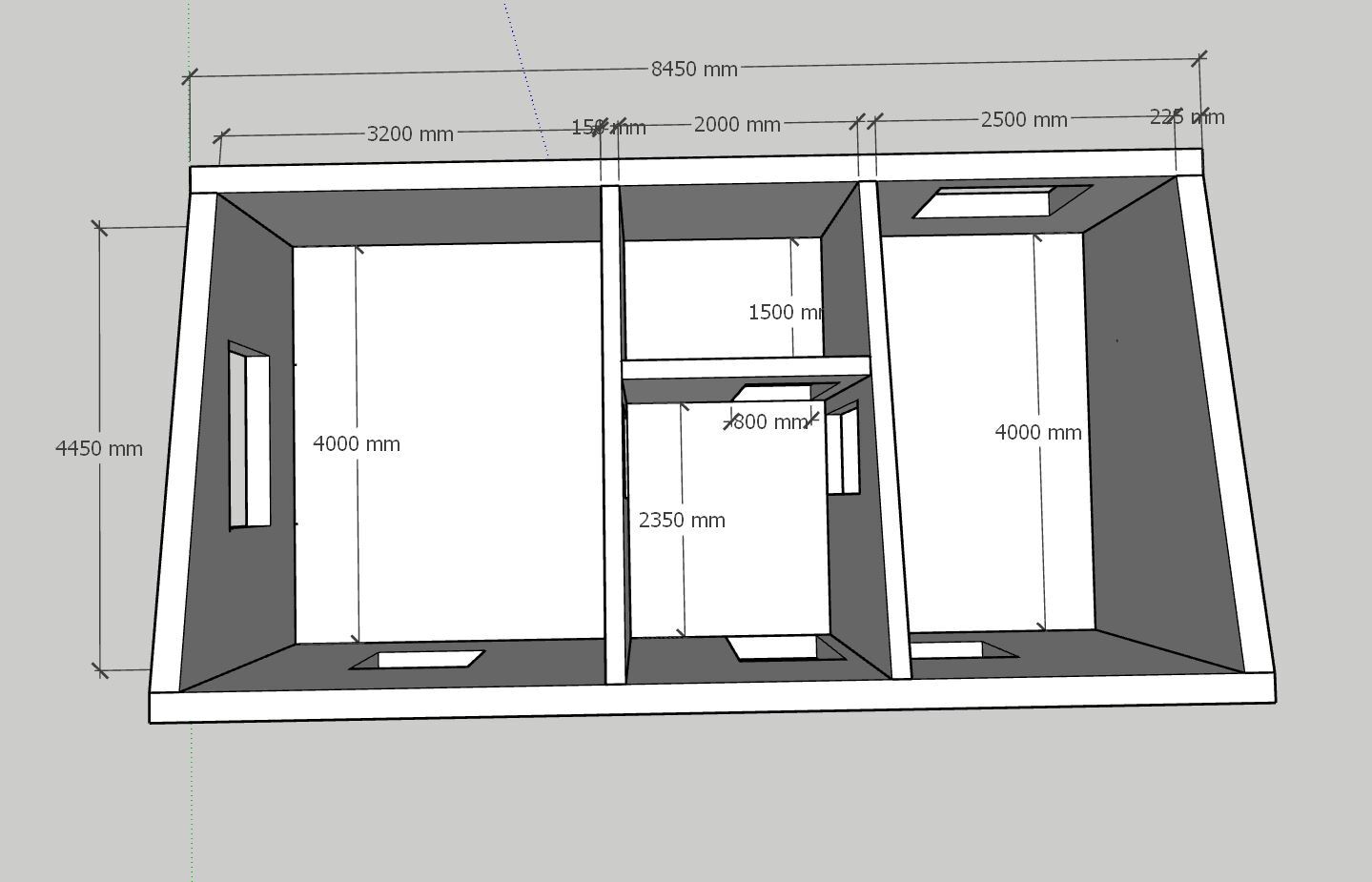 - Каркас стен: высота 2500 мм. периметор 3500 мм. центральная ; толщина 150 мм;