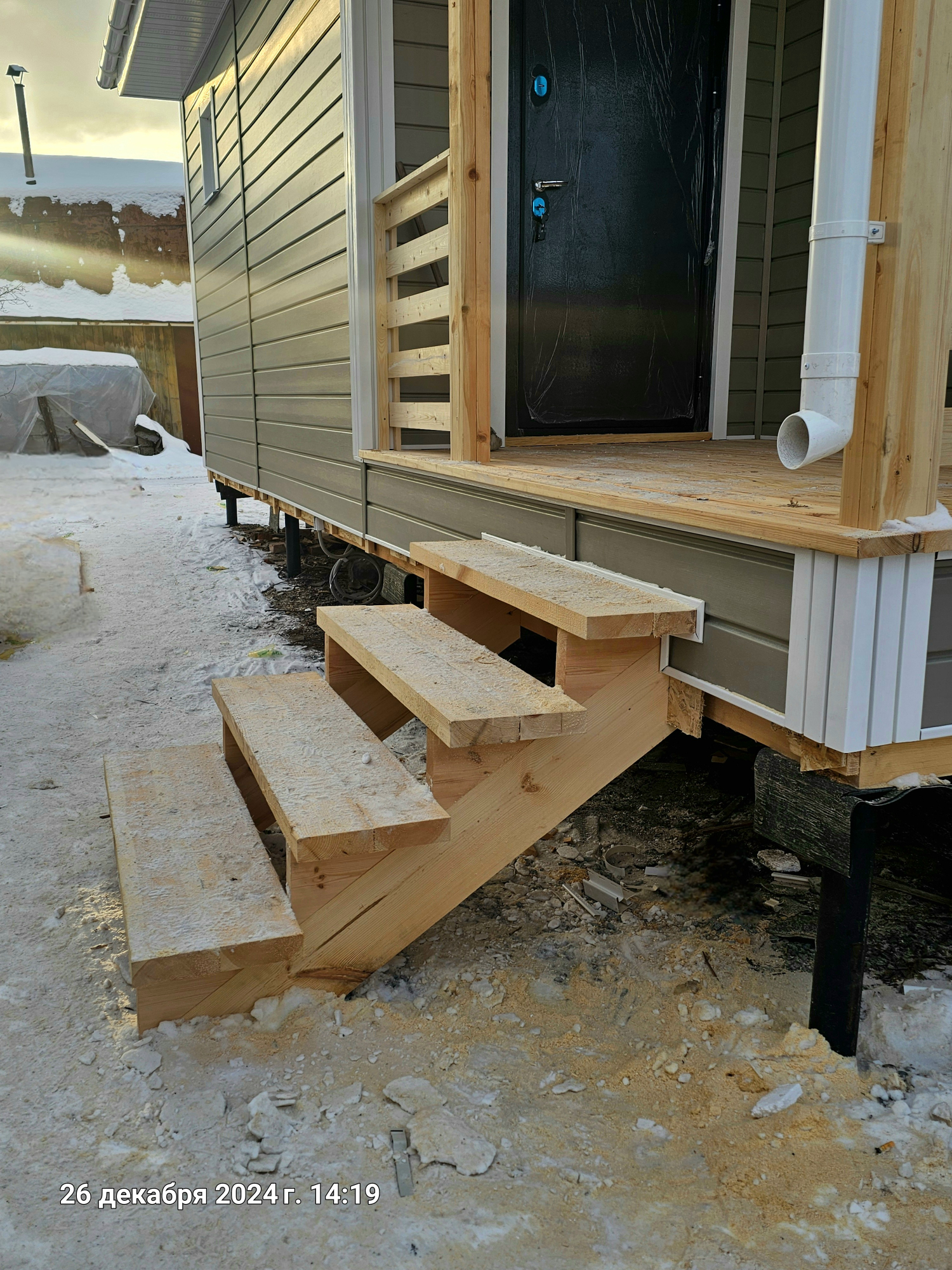 - Настил пола: плита ОСП-3 22 мм, на веранде — доска террасная 32 мм сосна;