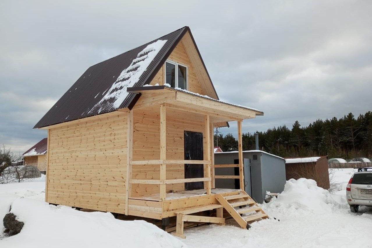 Каркасный дом 4х5м с мансардой 3х5м и верандой 1.5х4м, СНТ Гвоздика (г.Реж)