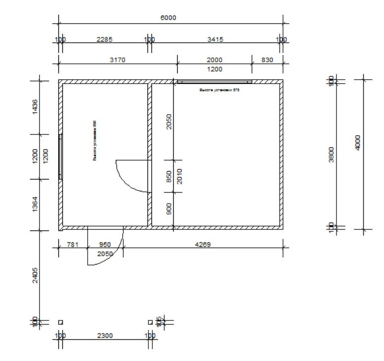 - Каркас стен: высота 2500 мм, толщина 100 мм; доска 50х100 мм;