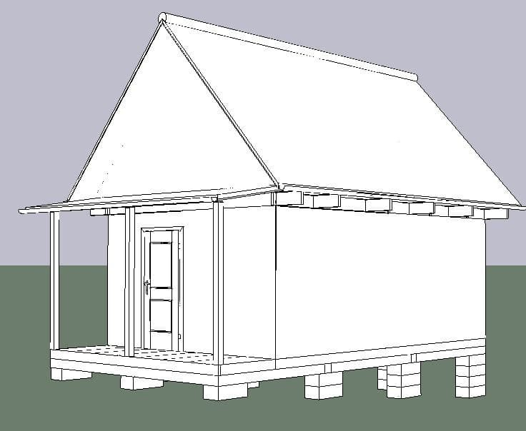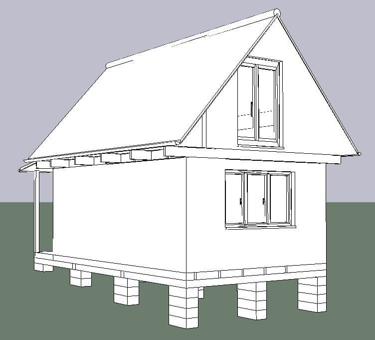 Комплектация Каркасного дома 4х6 с мансардой и открытой верандой