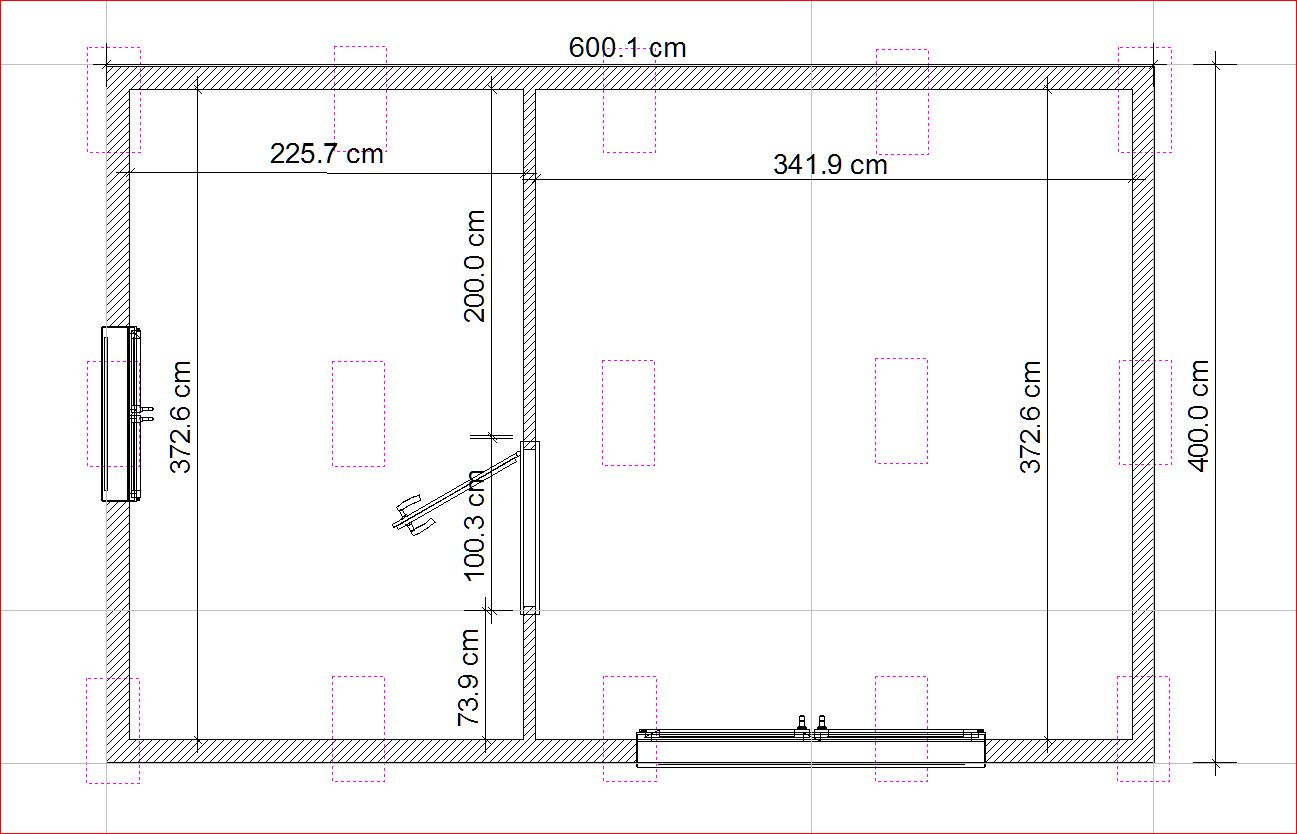 - Каркас стен: высота 2500 мм, толщина 100 мм; доска 50х100 мм;