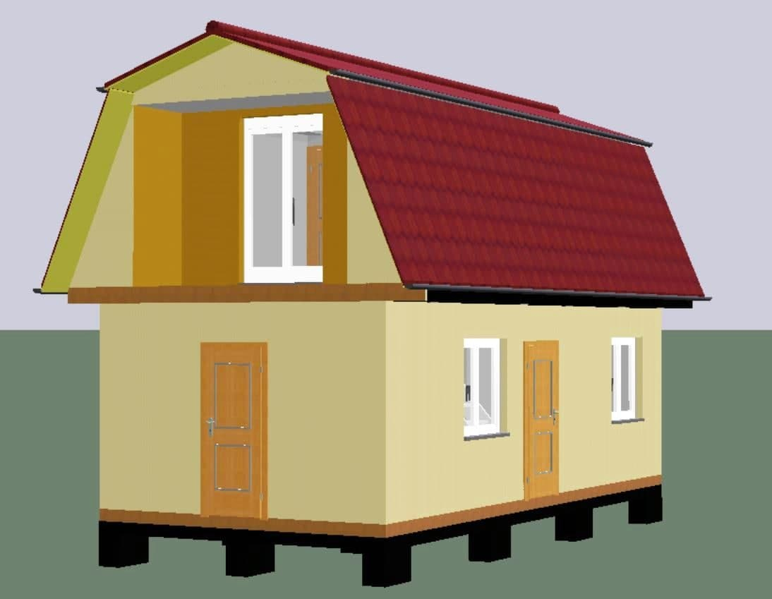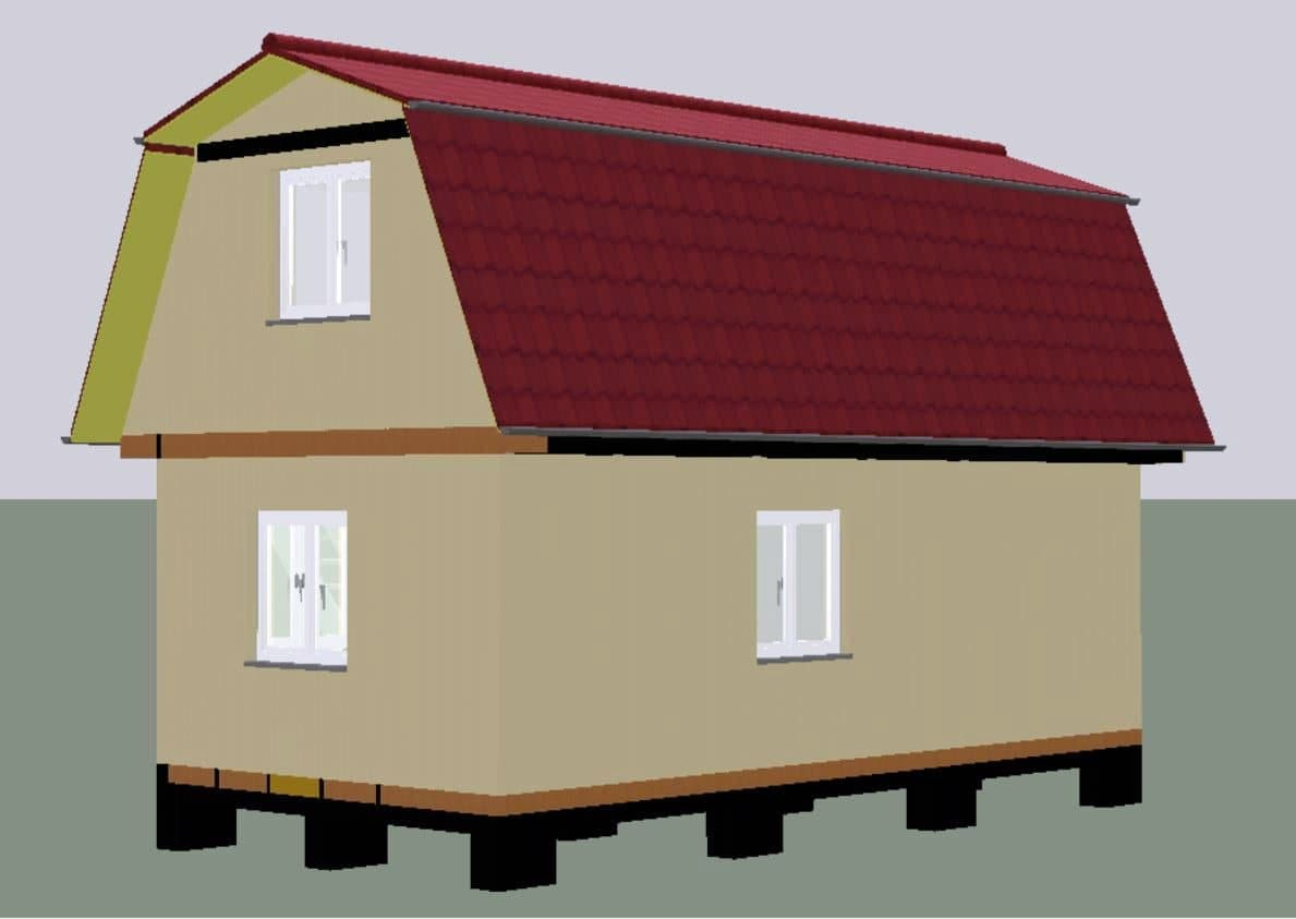 - Кровля: двухскатная ломаная, профиллированный лист С-21 0.45 цвет «шоколад»;