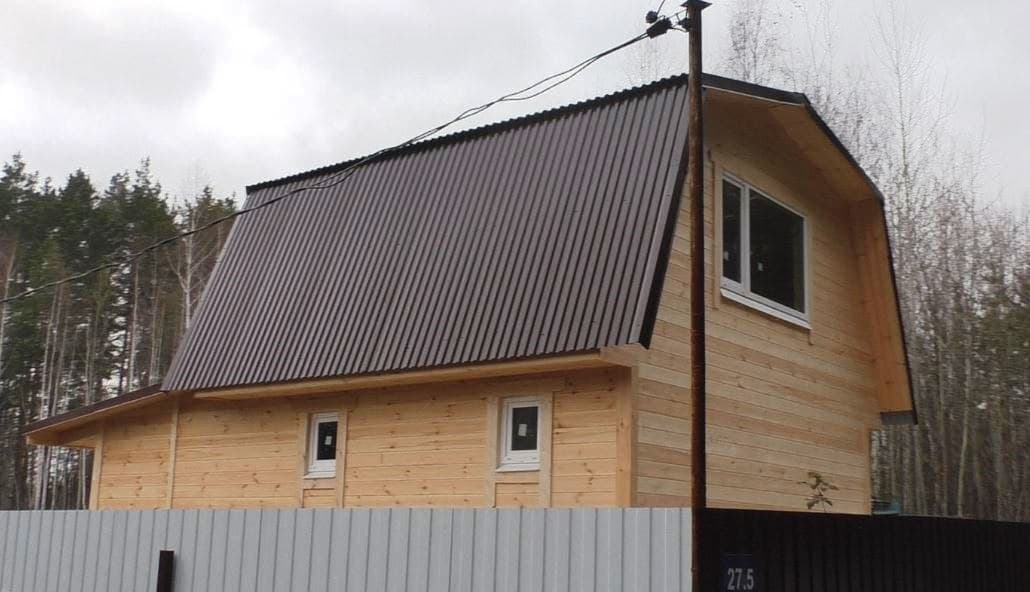 - Кровля: двухскатная ломаная, профиллированный лист С-21 0.45 цвет «шоколад»;