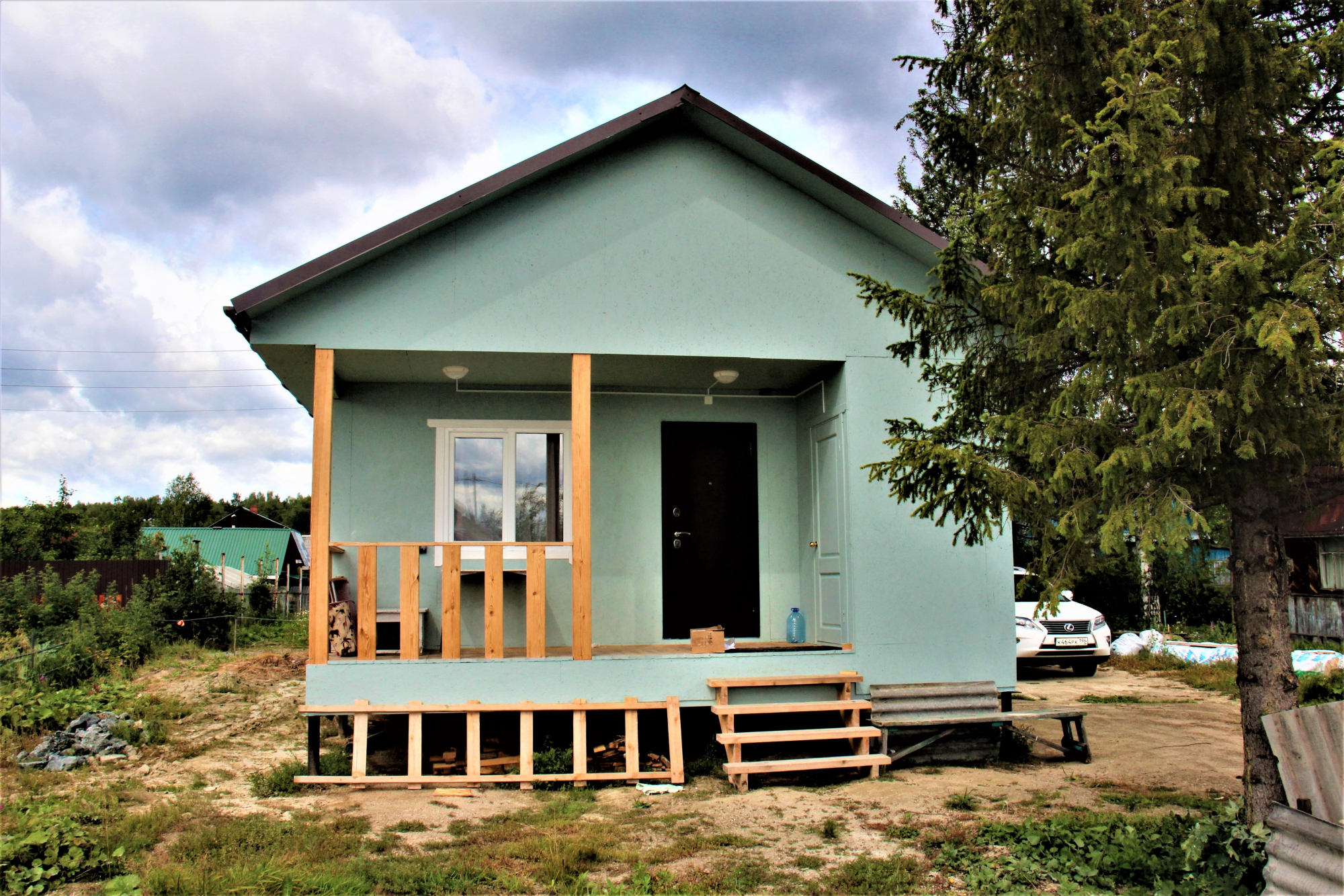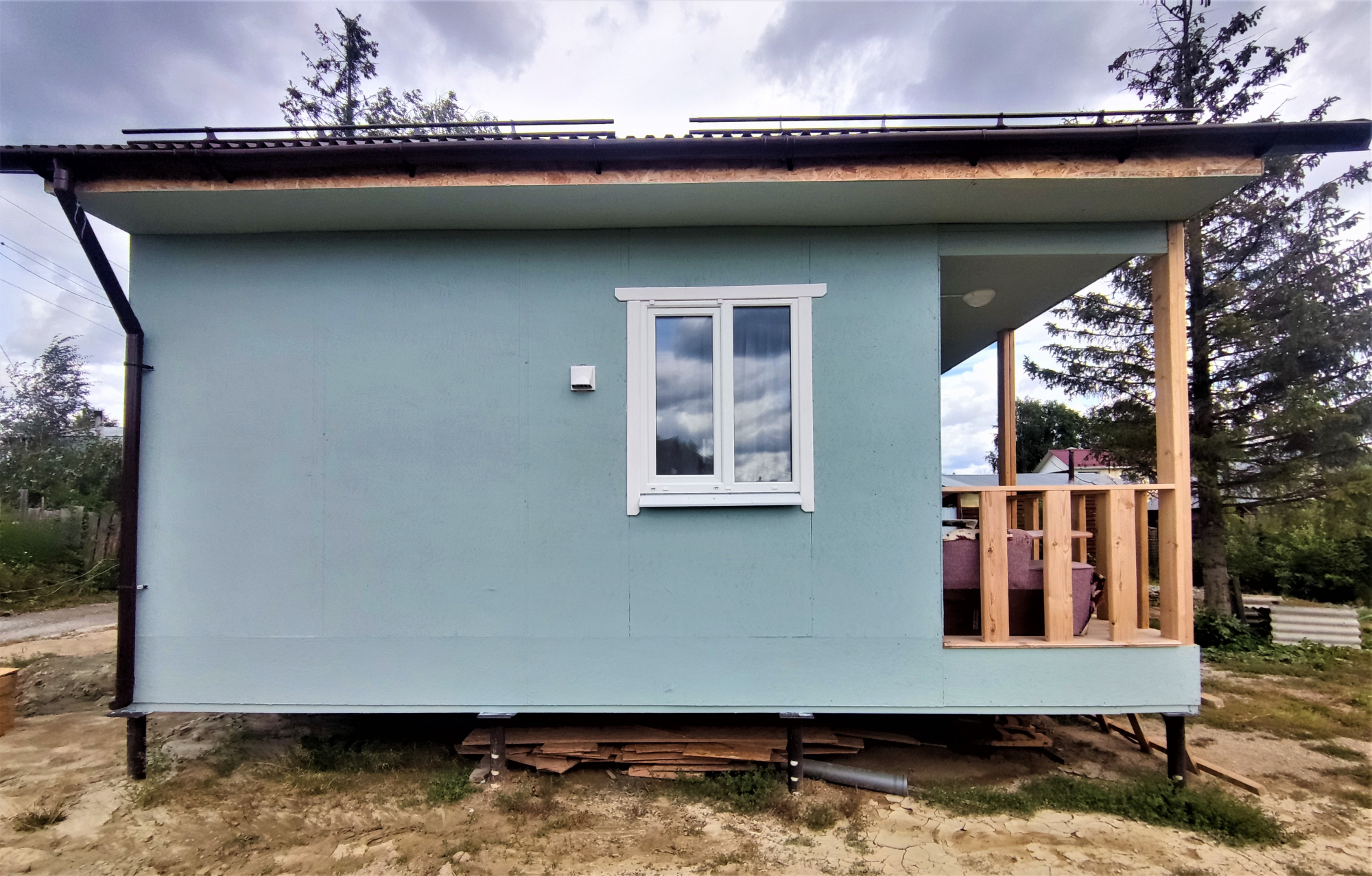 Каркасный дом 5х6 с террасой и кладовой под одной кровлей, СНТ Виктория (Широкая речка)