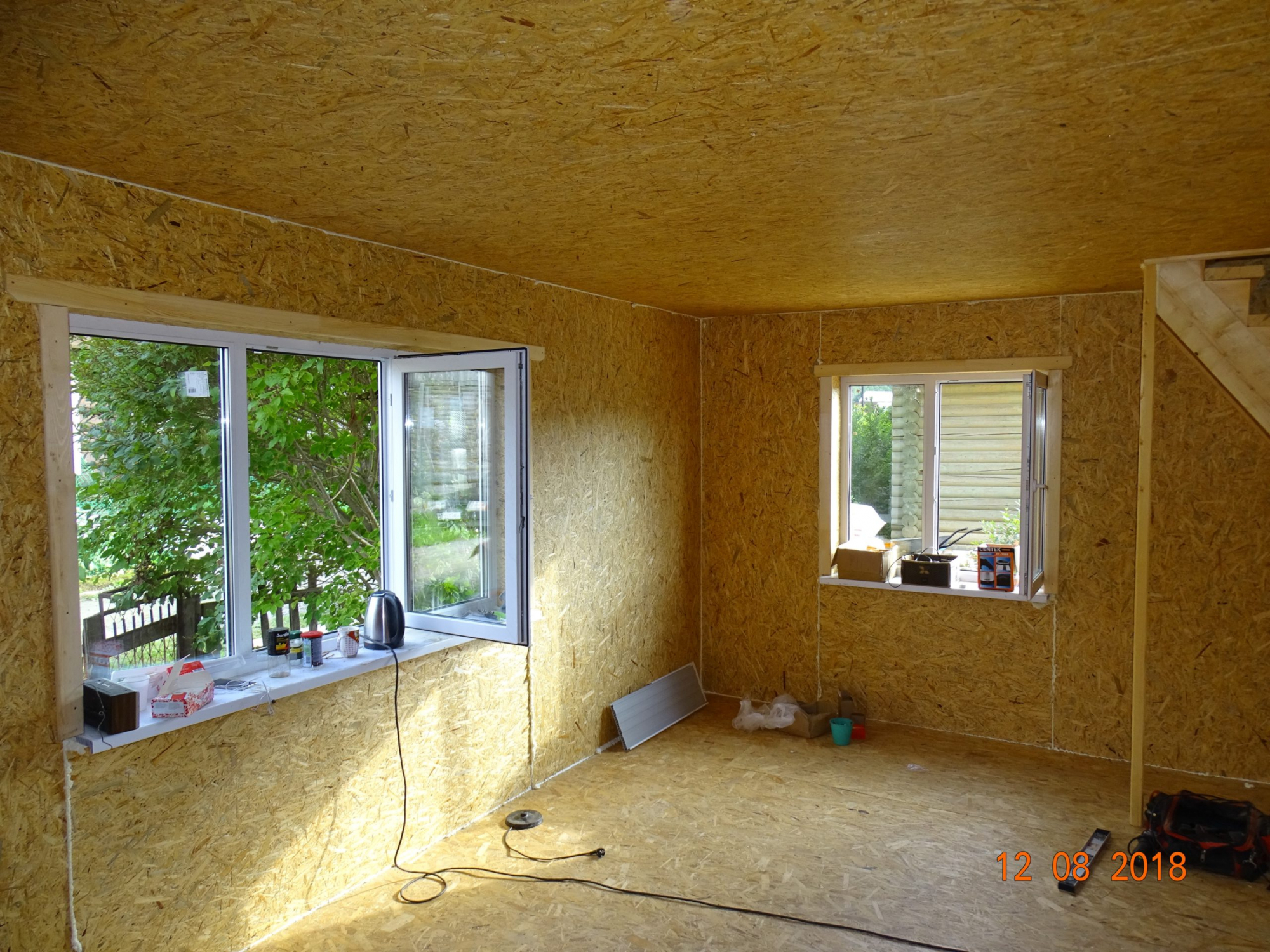 - Внутренняя обшивка стен: плита ОСБ 3-9 мм;