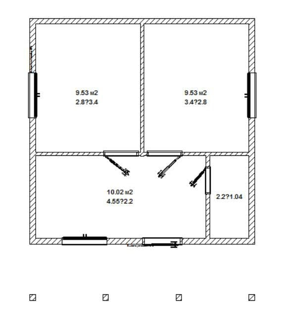 - Окно: 3шт — профиль REHAU 3 камерный, стеклопакет 2 камерный, подоконник, слив, откосы, обналичка, антимоскитная сетка;