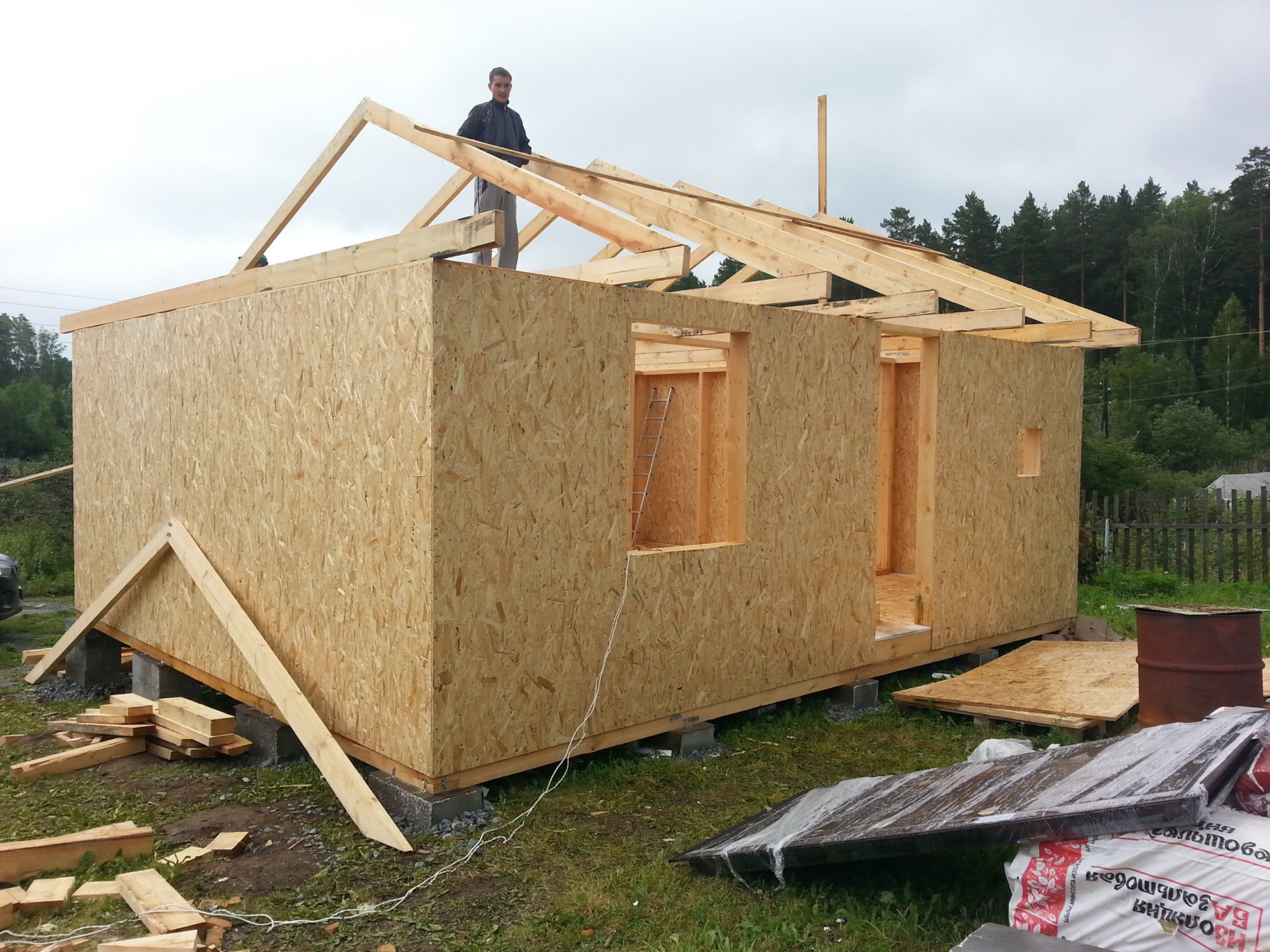 - Наружная обшивка стен: плита ОСП-3 9 мм;
