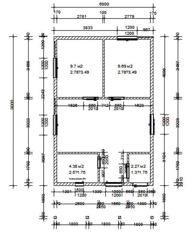 - Каркас стен: высота 2500 мм, толщина 200 мм; доска 50х200 мм;