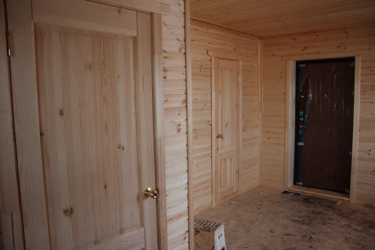 - Двери: дверь входная — сейф подъездная, межкомнатные — филенчатые, в парилку — банная, липа;