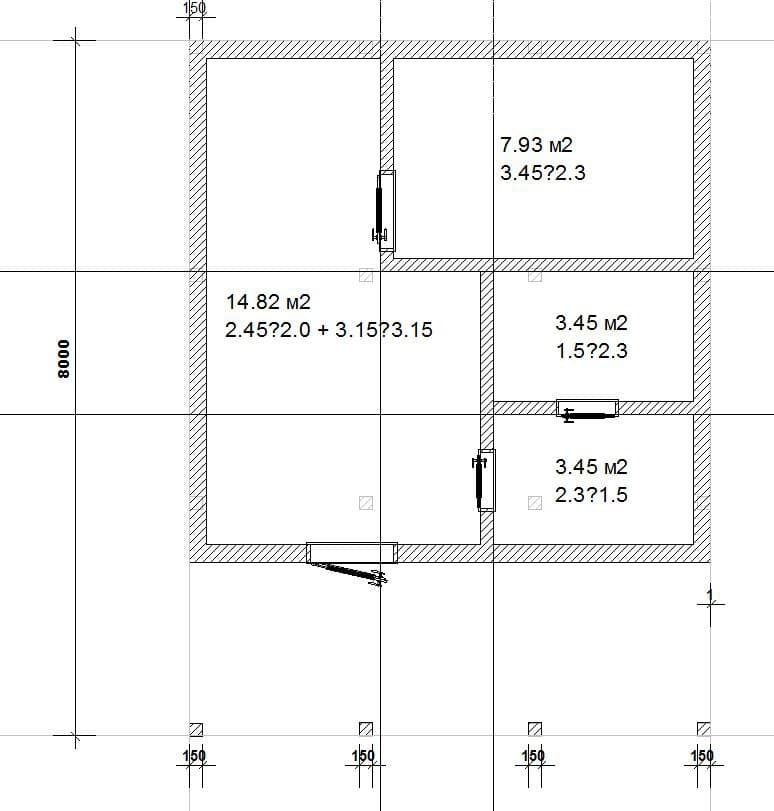 - Каркас стен: высота 2500 мм, толщина 150 мм; доска 50х150 мм;