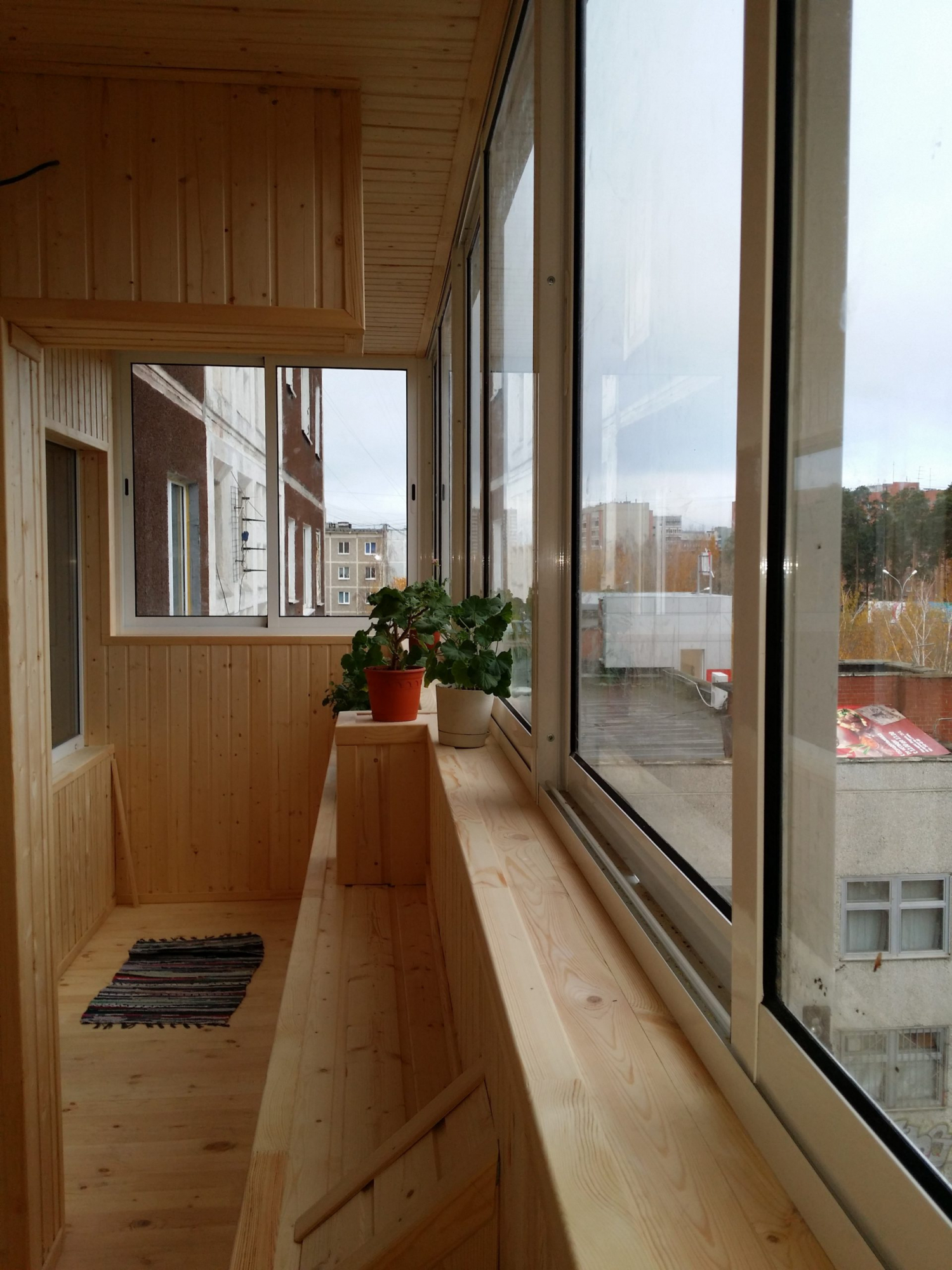 Внутри лоджия полностью обшита евровагонкай, детальная обшивка парапета (передняя плита)