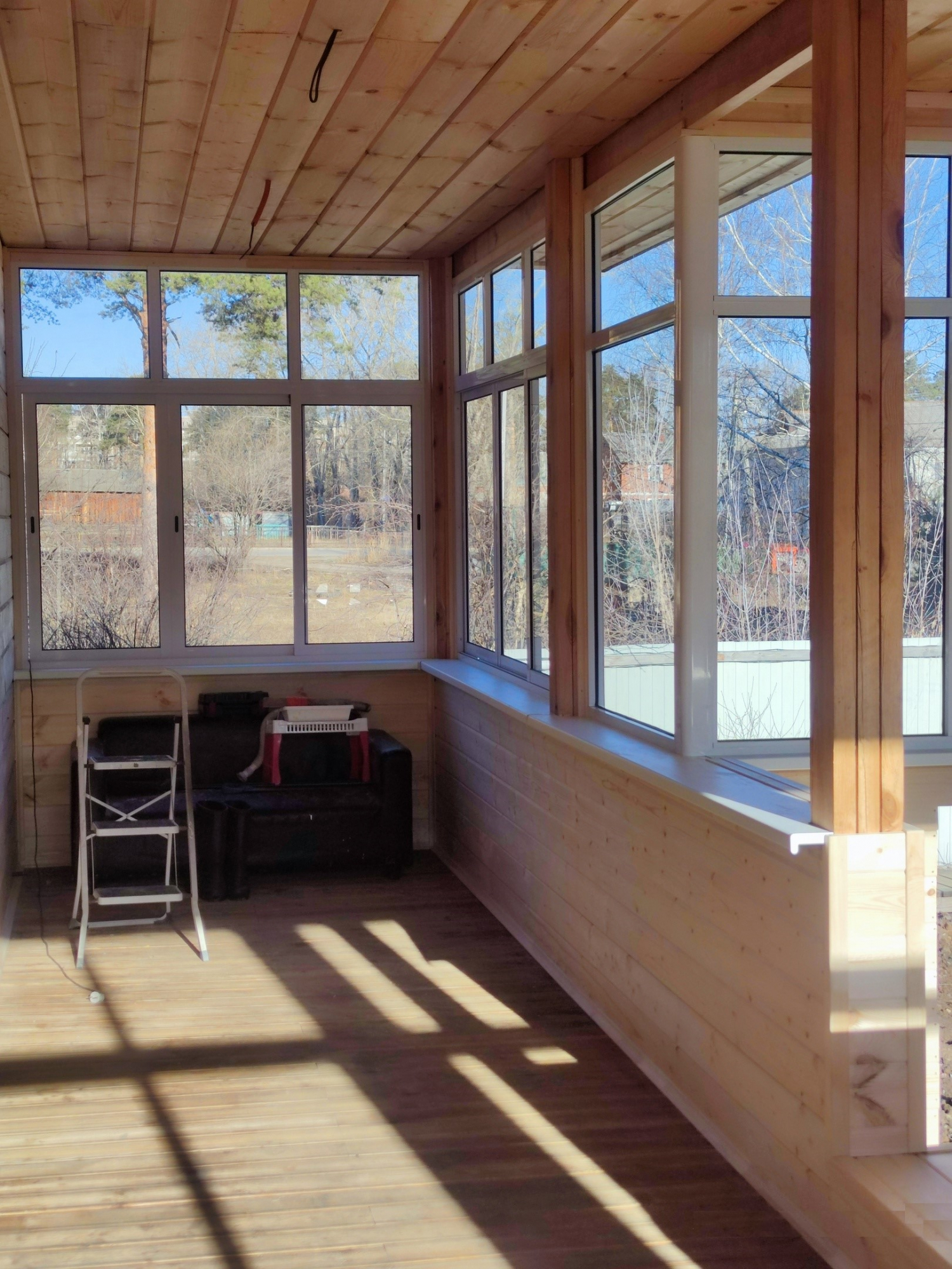Остекление веранды раздвижной алюминиевой системой с горизонтальным импостом