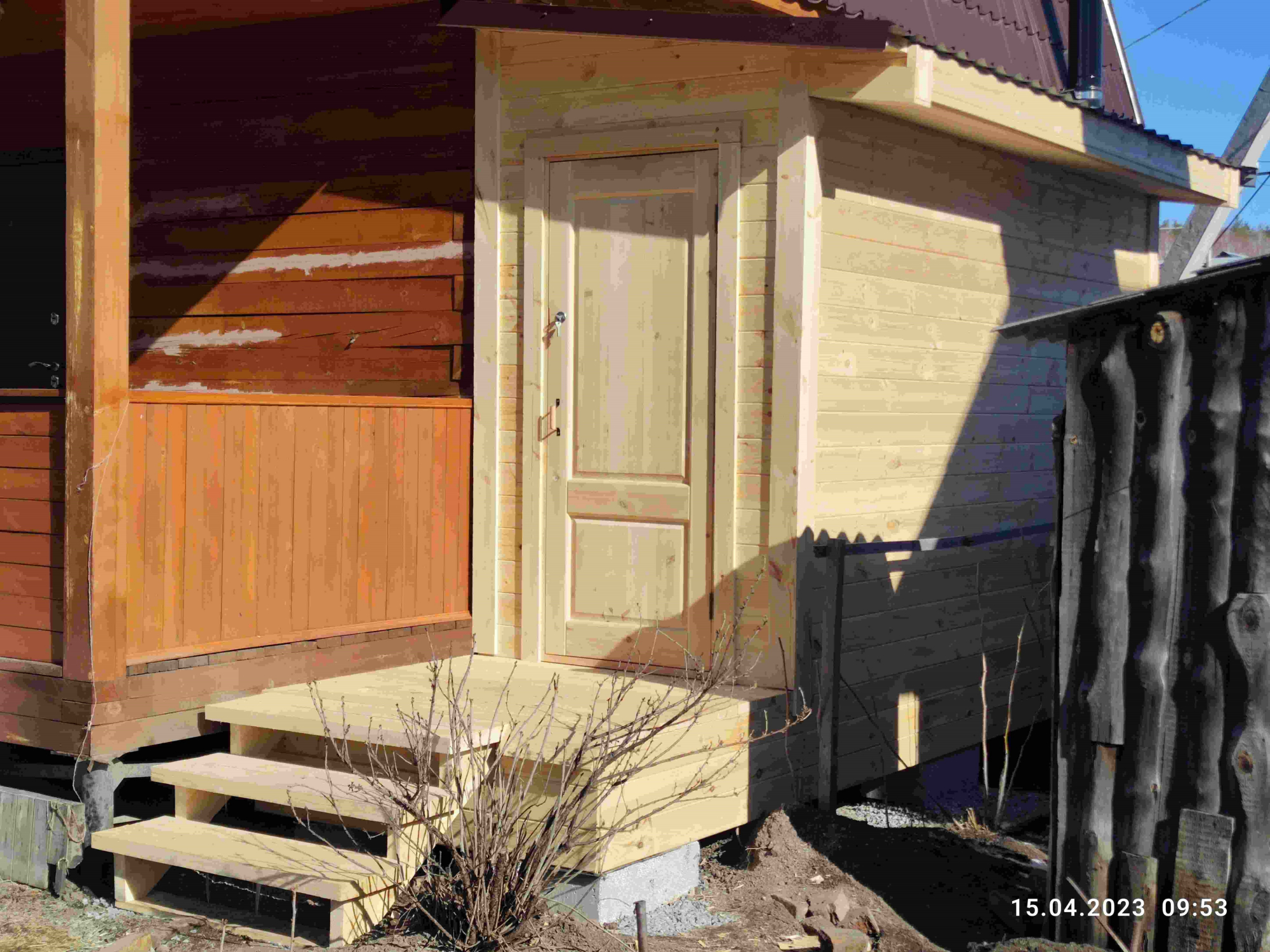 Пристрой каркасный 1.5м х 4м с крыльцом из 4х ступеней, СНТ Уралец