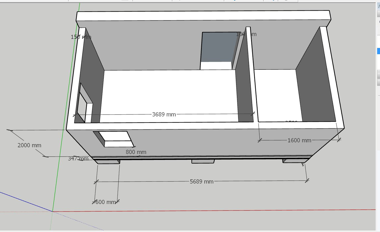 - Каркас стен: высота 2500мм, толщина 150 мм, доска 50х150 мм;