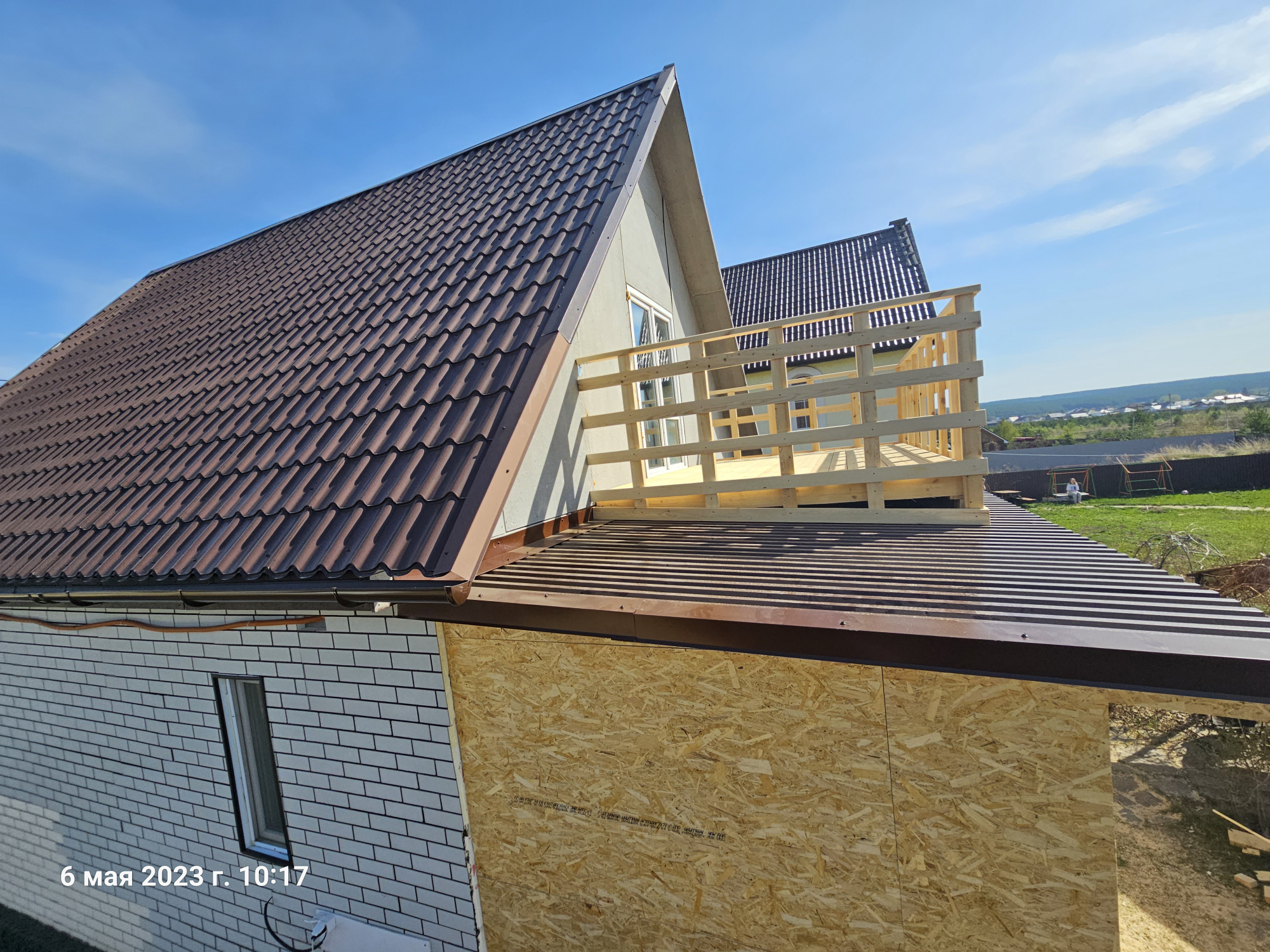 - Кровля: односкатная, профилированный лист с-21 0.45 цвет «шоколад»;