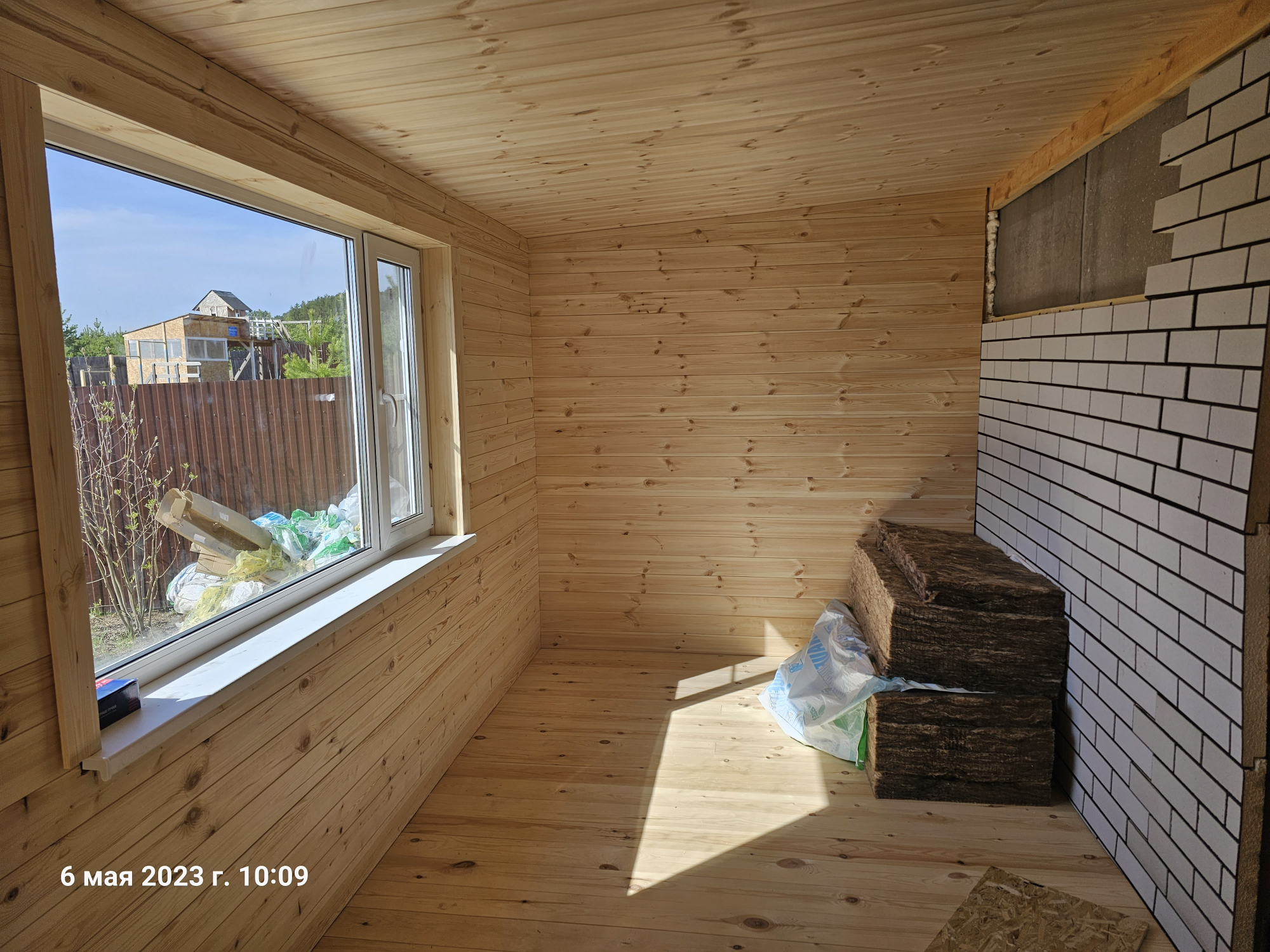 - Внутренняя обшивка стен: евровагонка сосна 90мм сорт АВ, укладка "в горизонт";