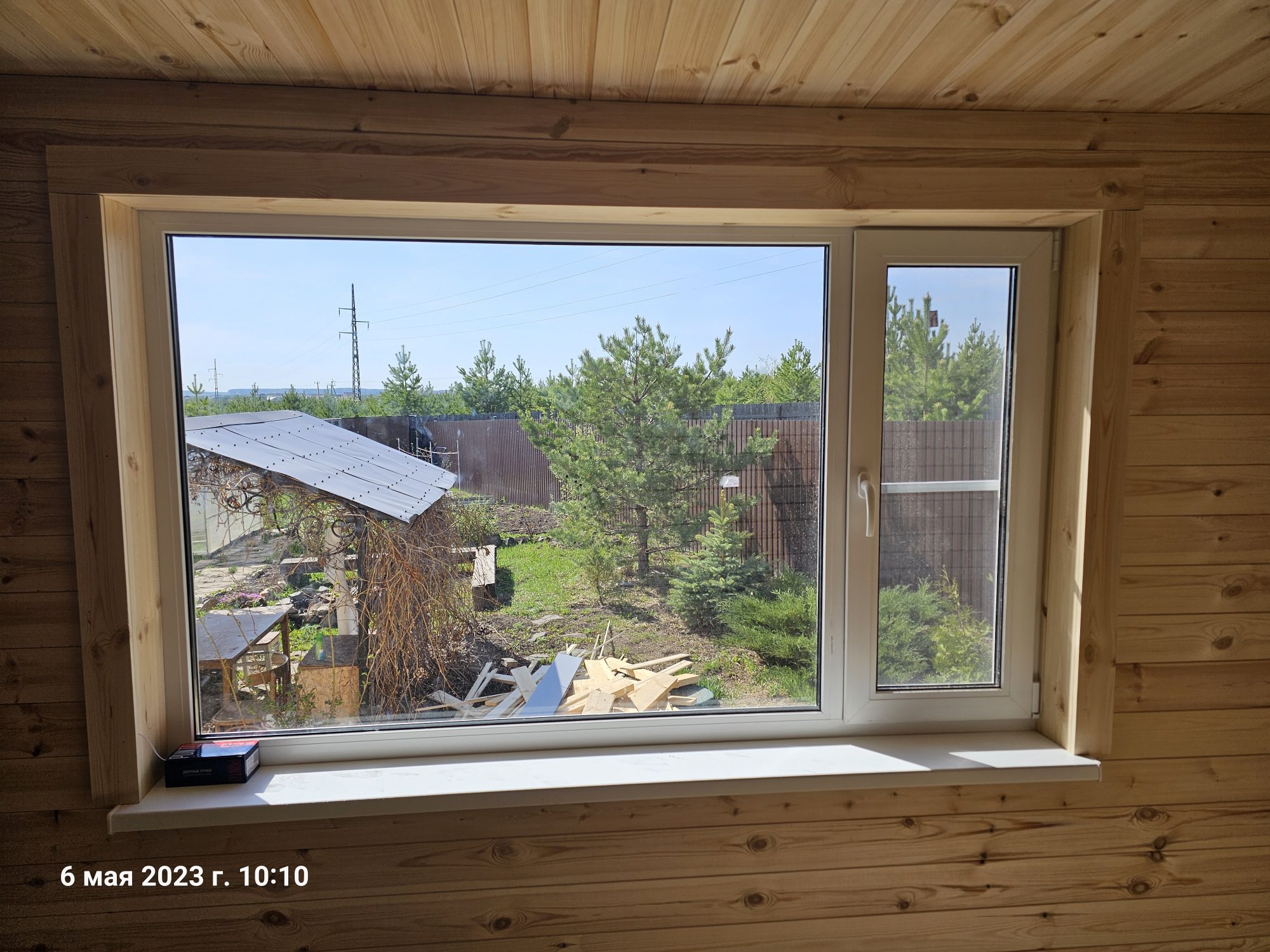 - Окна, 1шт: профиль REHAU 3 камерный, стеклопакет 2 камерный, подоконник, слив, откосы, обналичка, антимоскитная сетка;