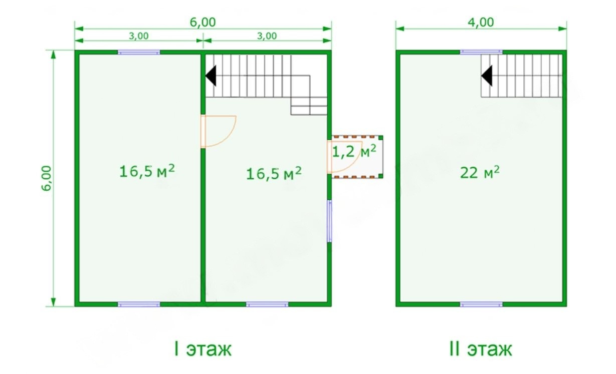 Проект каркасного дома 6м х 6м с мансардным этажом 4м х 6м